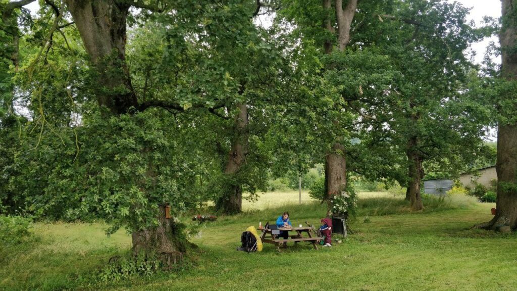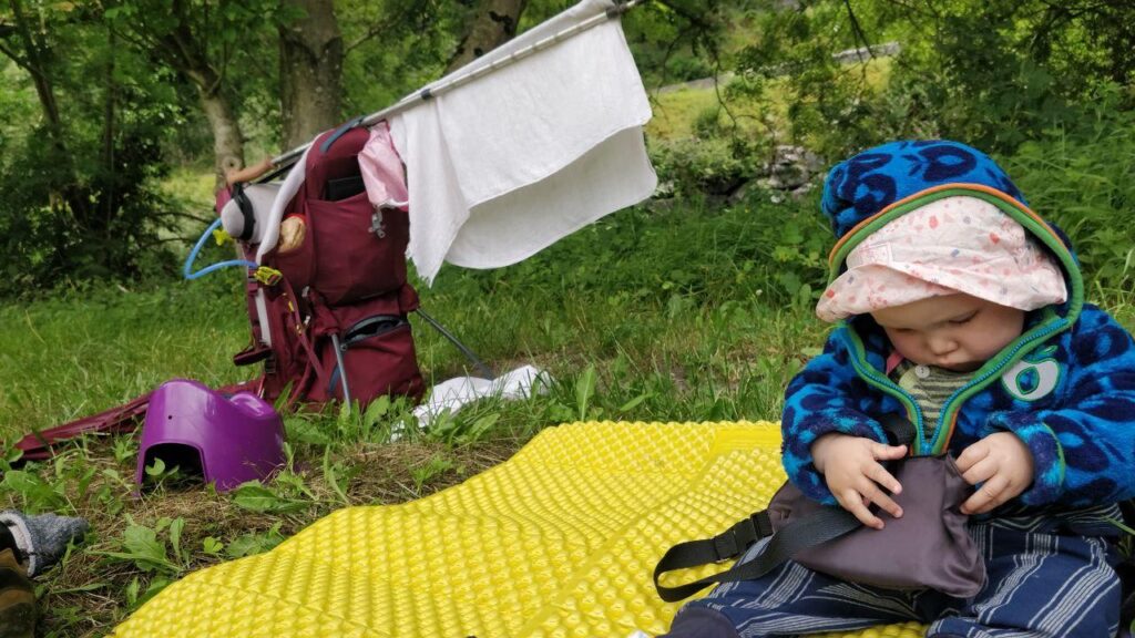 Und das Zelt. Das ergibt die Kombination. Wer ein Kind dabei hat, was man nicht soll, muss ein Zelt mitnehmen, dass man ohne Kind auch nicht braucht. Im folgenden kommen deshalb ein paar Texte, was wir wegen dem Kind dabei hatten und was man für ein Kind braucht. Da letztere meist vom Umtausch ausgeschlossen sind, helfen Tipps beim kauf wenig weiter. Durch ein paar wanderkompatible Nachjustierungen lässt sich das Leben auf in der Natur etwas leichter gestallten